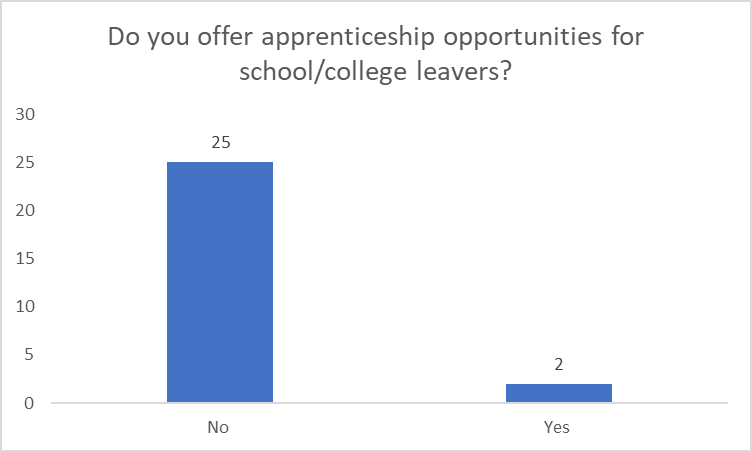 When asked why the business didn’t offer apprenticeships the main reason was that there business wasn’t suitable for an apprentice.
