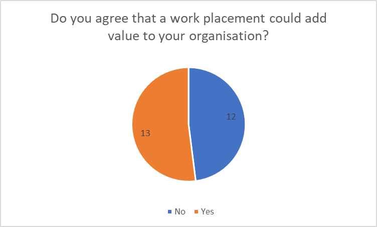 When asked what type of work placement would add value to the business, the main answer was administration.