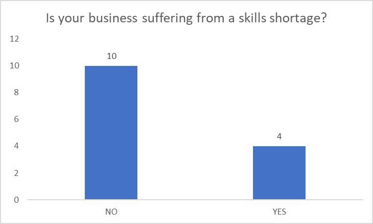 When asked why the business didn’t offer apprenticeships the main reason was that they needed people who were already qualified and they couldn’t facilitate an apprenticeship.