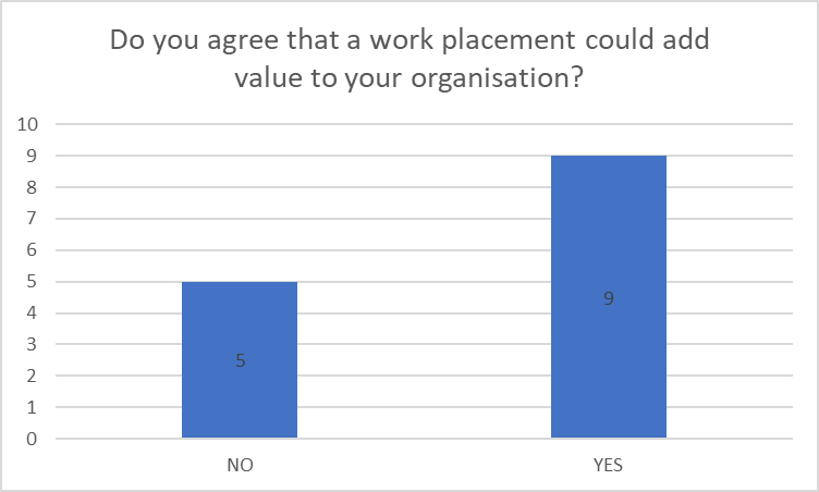 When asked what type of work placement would add value to the business, the main answer was administration.