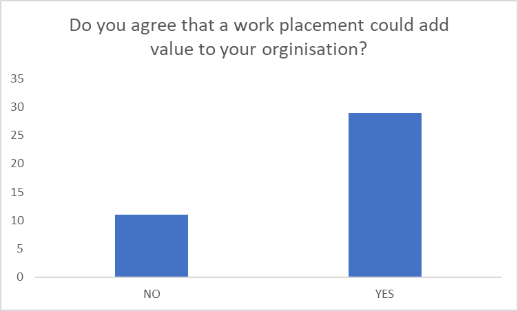 When asked what type of work placement would add value to the business, the main responses was administrative roles, there was a general consensus that due to the nature of the work a work placement might not be the best idea.