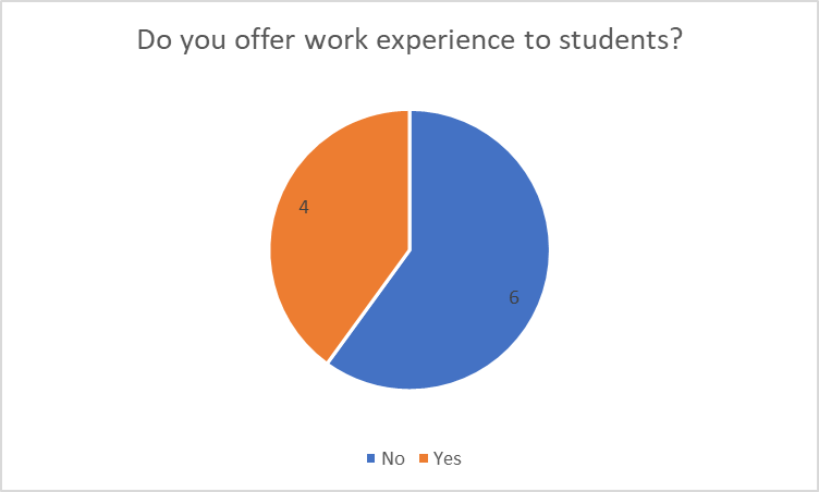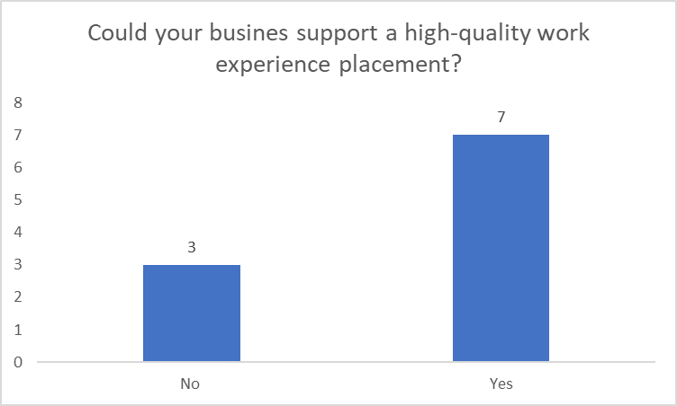 When asked what type of work placement would add value to the business, the main answer was administration.
